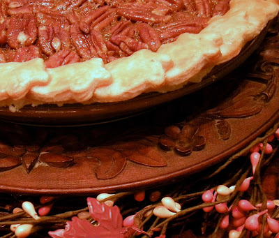 I love the little leaves on the crust border that you made. That looks so elegant. Now pecan pie, oh my do I ever love that one. Momma and Daddy live in Oklahoma and I always have the best pecans a gal could ever ask for, fresh from their orchard, each year. I am never without a freezer bag of pecans. I would love your recipe for that one. I am always looking for a good one.