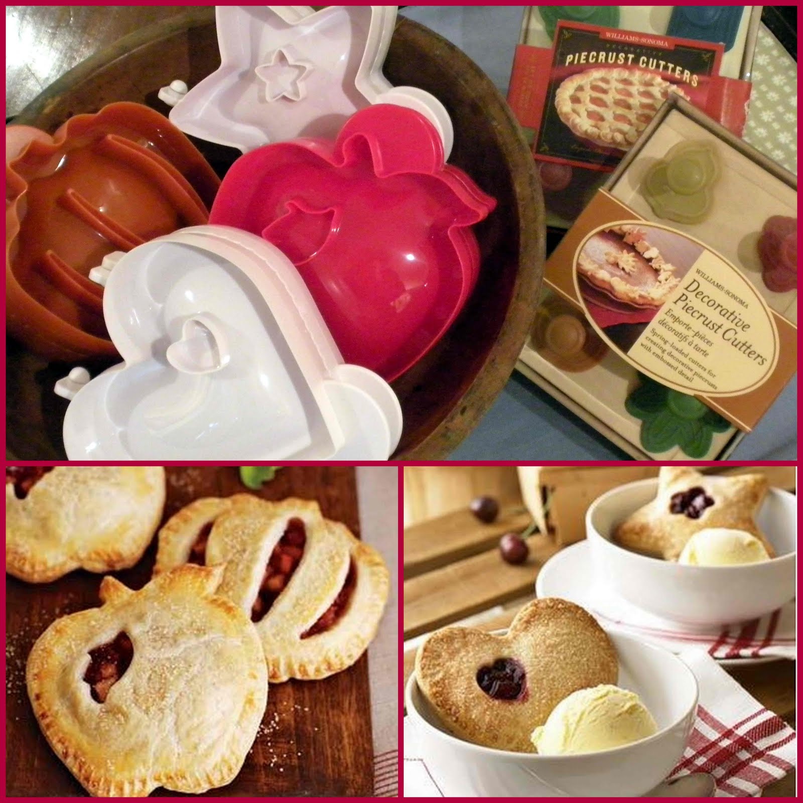 Pocket pies made in the William Sonoma pocket pie molds are also a favorite around here. The individual pies are fun for parties and are easy to make. I also highly recommend the mini pie crust cutters that William Sonoma sells. I like to trim the edge of a pie crust with a decorative edge, and the embossed detail of these cutters adds an extra touch.