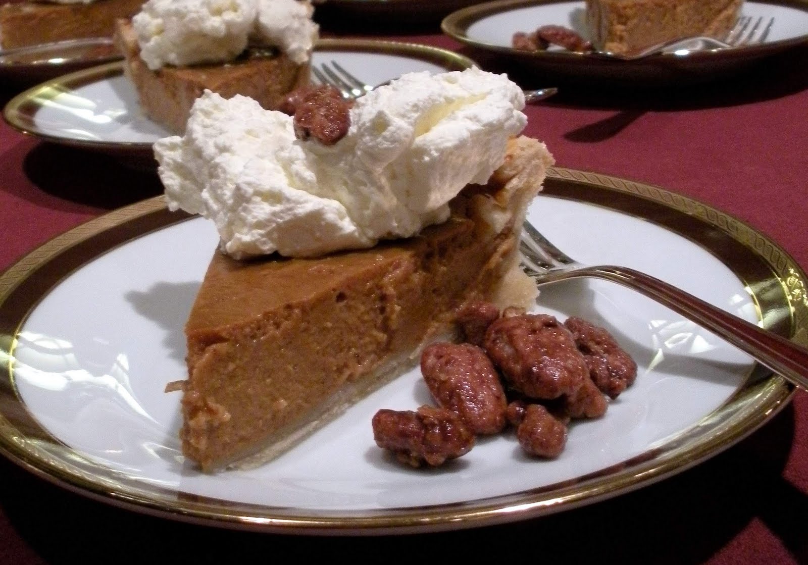 I like to serve pumpkin pie with a healthy scoop of whipped cream and a side of honey glazed Texas pecans.