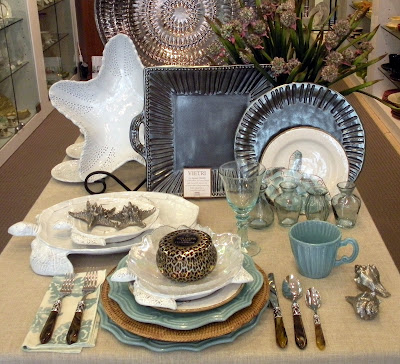 I recently saw the following table settings at two different locations of a local store. Each of these tables offered lovely seaside ambiance for summer entertaining. I adore VIETRI style! When I saw these tables I knew I wanted to share them with all who visit HFTS.