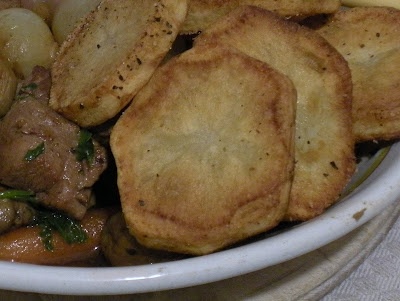 It's been raining here all day. So Lamb Ravoux Style with Sautéed Potatoes seemed like a perfect choice. Lamb with a vegetable mixture of carrots, onions, and mushrooms cooks in a rich broth of lamb stock and dry white wine.